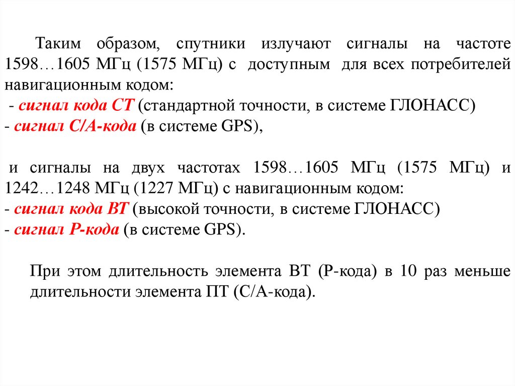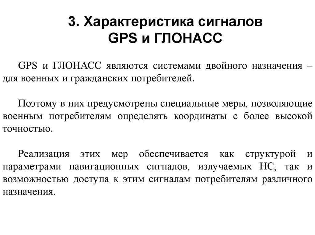 типов сигналов и методов определения навигационных параметров.