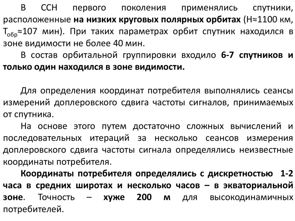 зоне. Точность – хуже 200 м для высокодинамичных