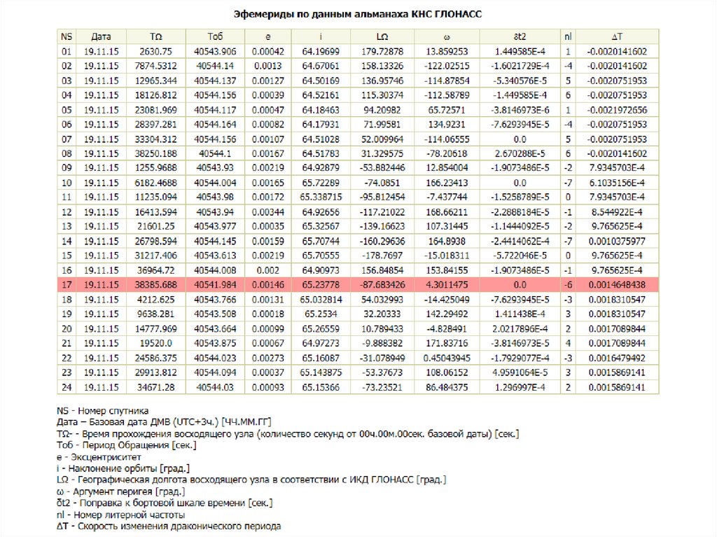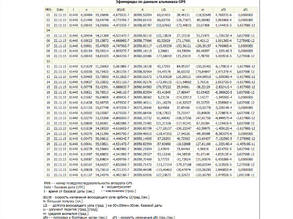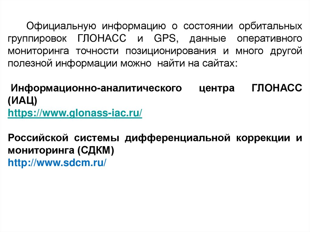 Официальную информацию о состоянии орбитальныхгруппировок ГЛОНАСС и GPS, данные оперативного