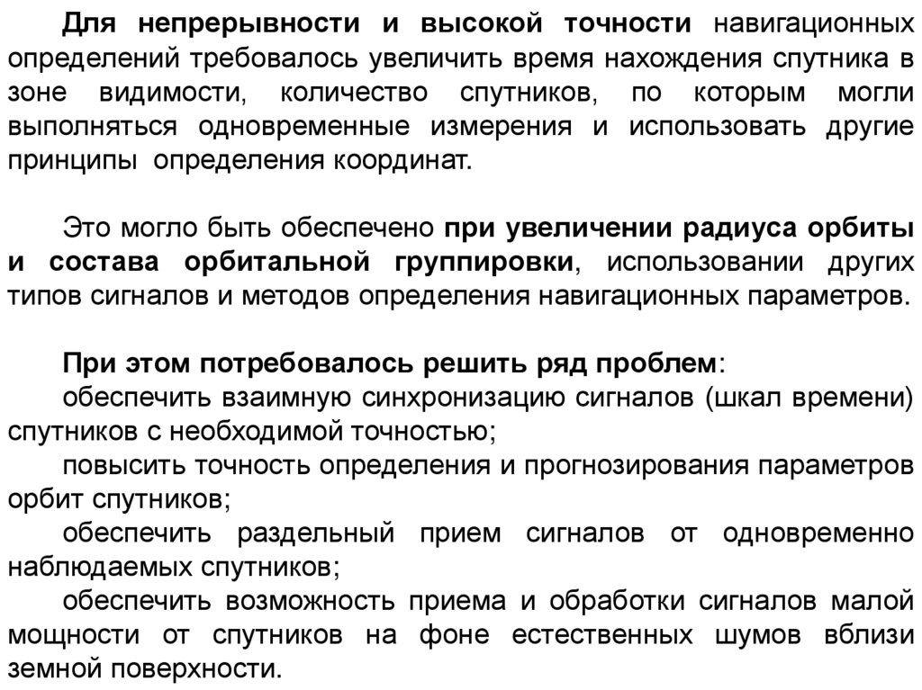 Для непрерывности и высокой точности навигационныхопределений требовалось увеличить время нахождения спутника в