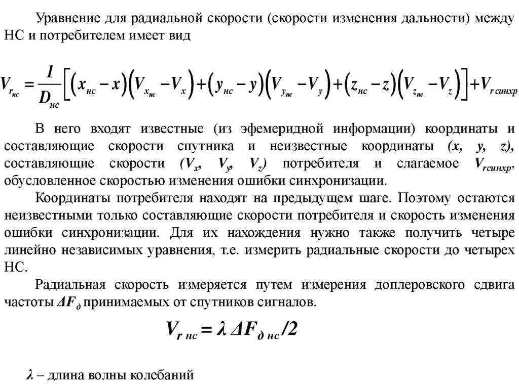 доплеровского сдвига частоты сигнала определялись неизвестные