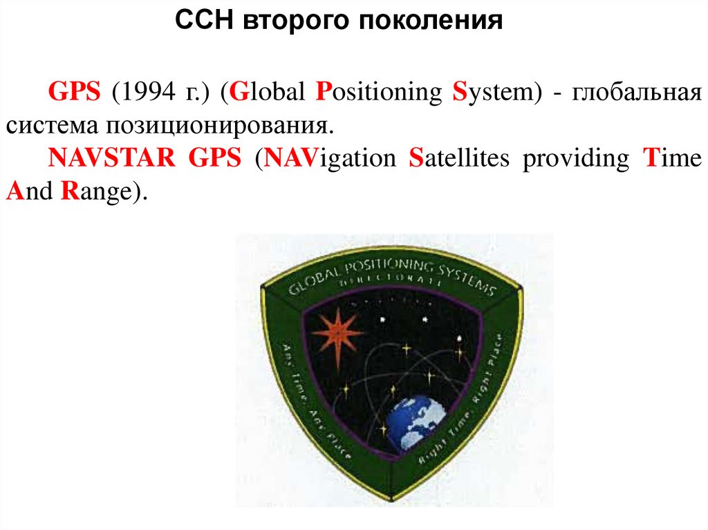 ССН второго поколенияGPS (1994 г.) (Global Positioning System) - глобальная