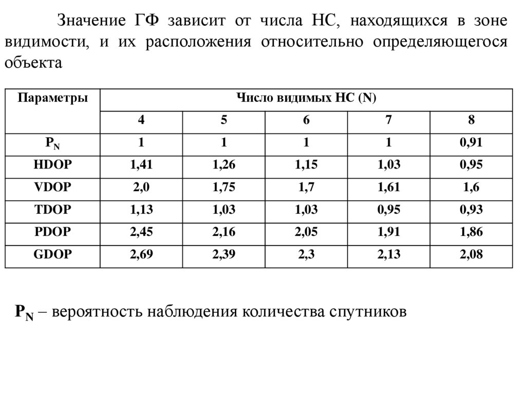 наблюдаемых спутников;