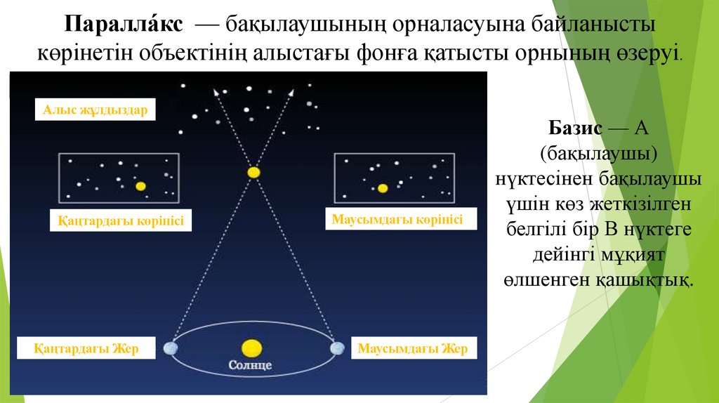 Аспан денелеріне дейінгі арақашықтықты анықтау. Параллакс