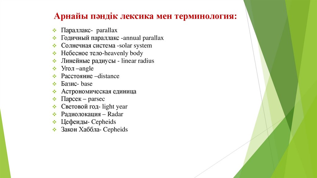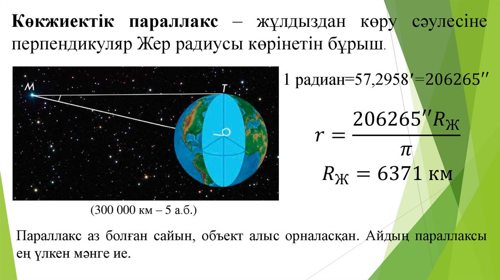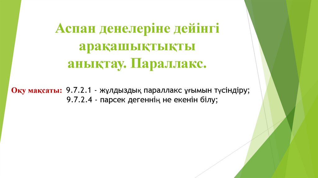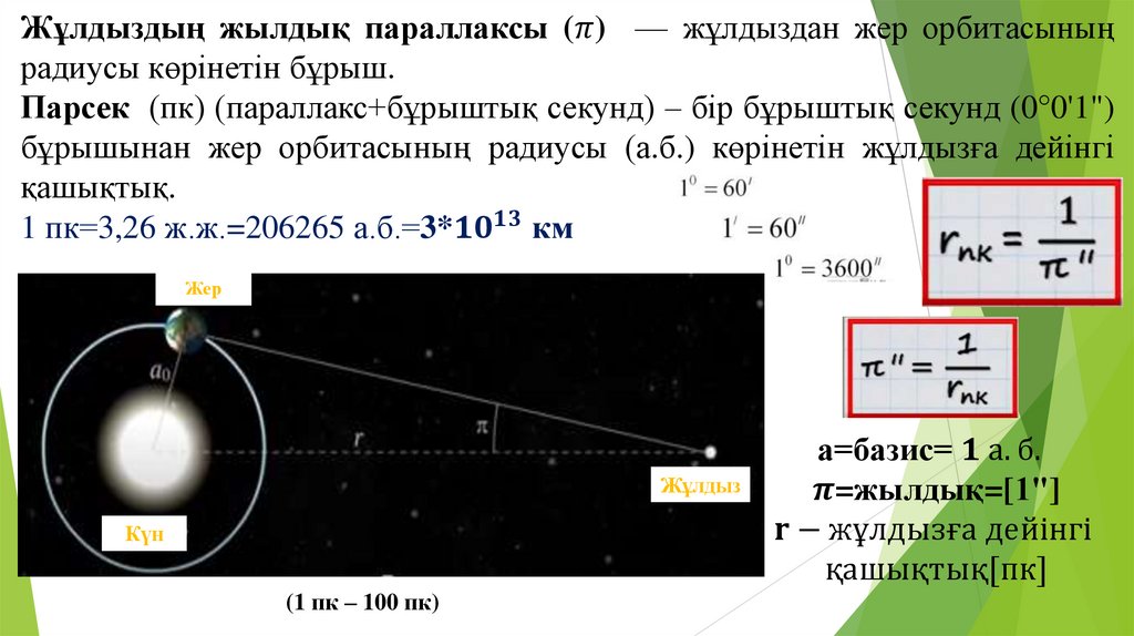 Оқу мақсаты: 9.7.2.1 - жұлдыздық параллакс ұғымын түсіндіру;9.7.2.4 - парсек дегеннің не екенін білу;