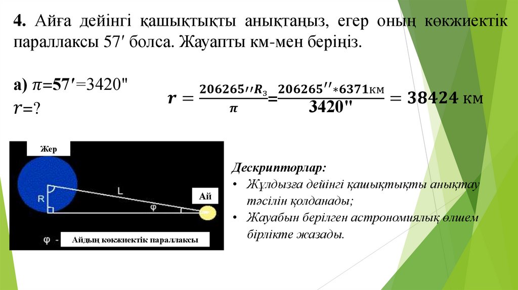 4. Аспан денелеріне дейінгі арақашықтықты анықтау. Параллакс.
