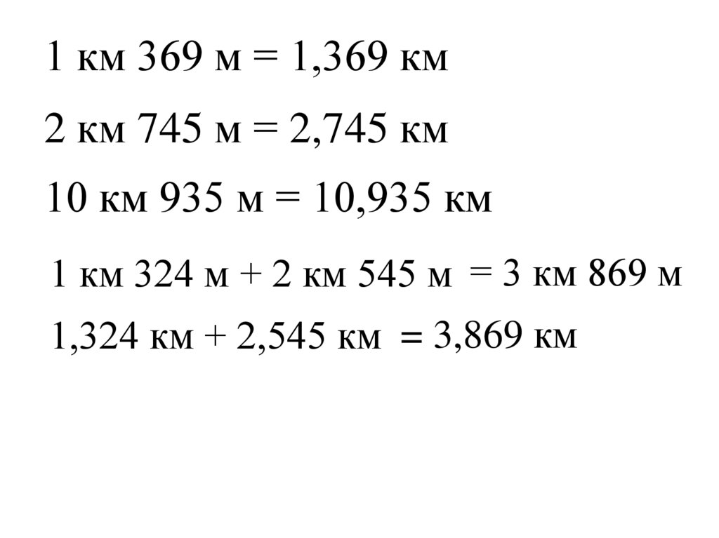 1 км 369 м = 1,369 км