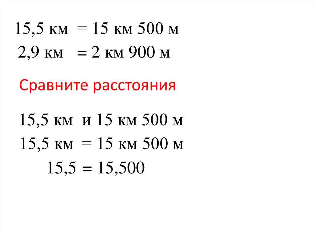 15,5 км = 15 км 500 м2,9 км = 2 км 900 м