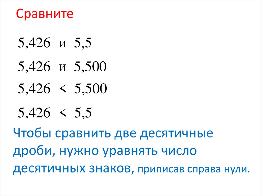 Сравните5,426 и 5,5