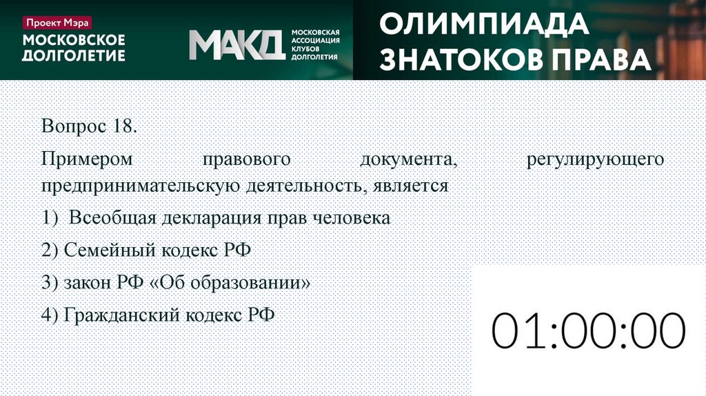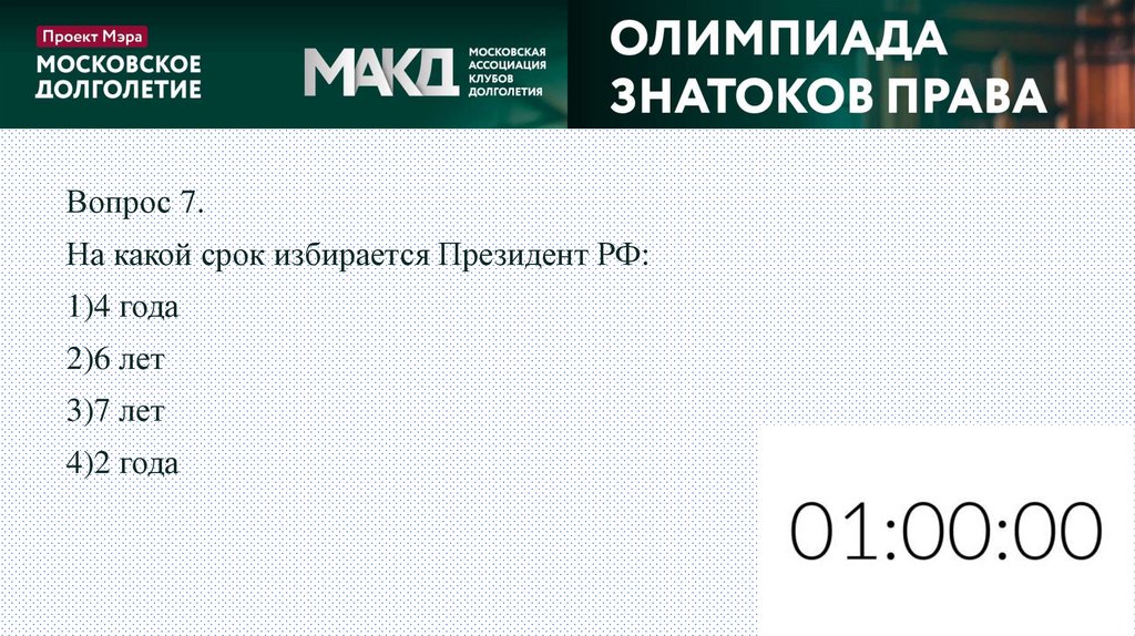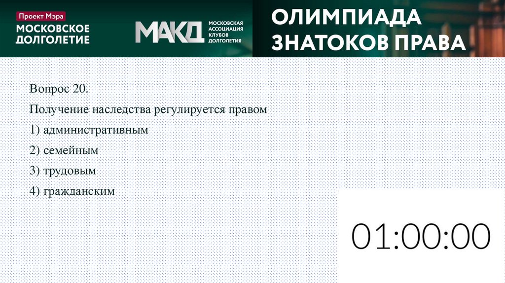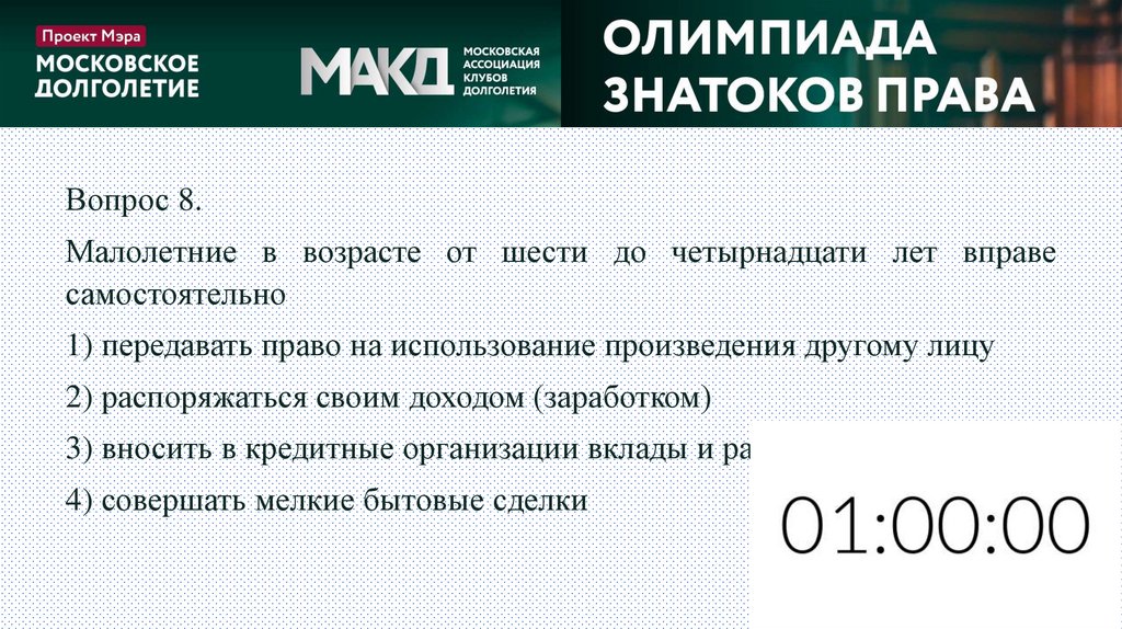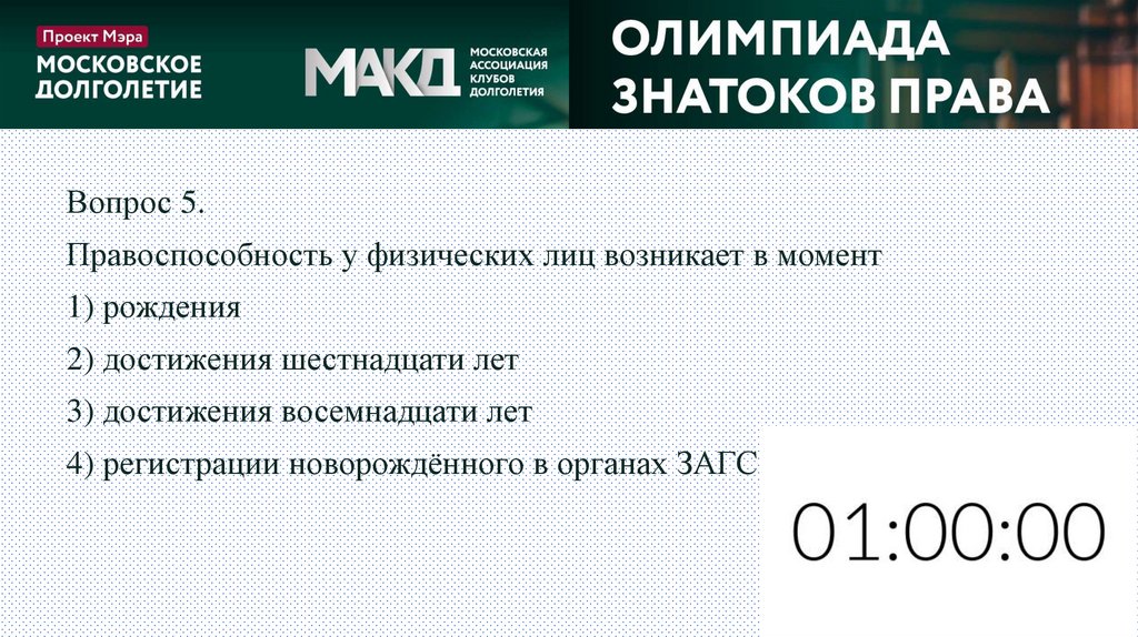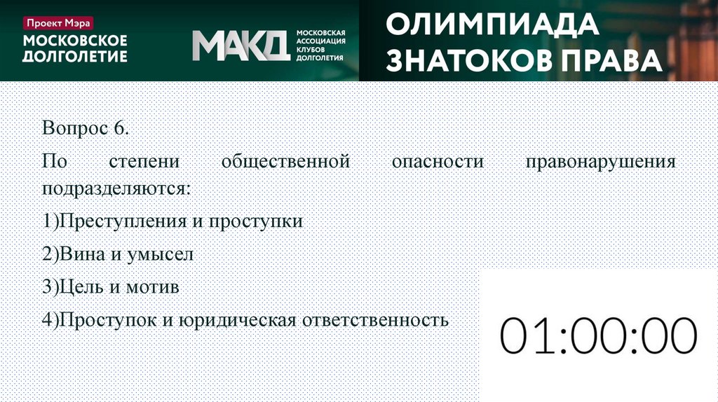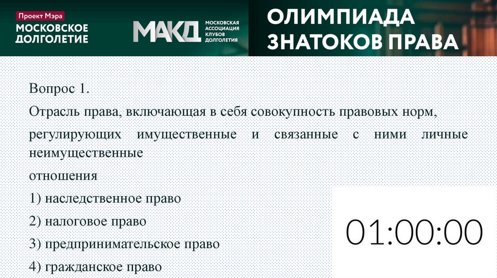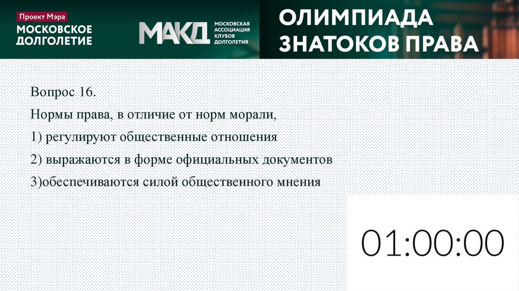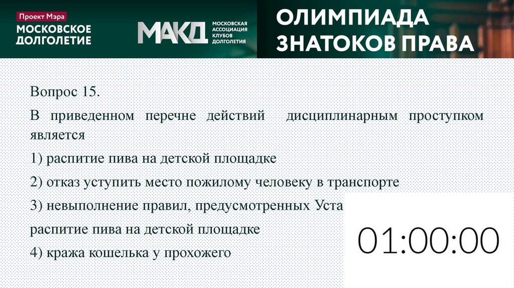 Московское долголетие олимпиада знатоков права во всех центрах московского долголетия
