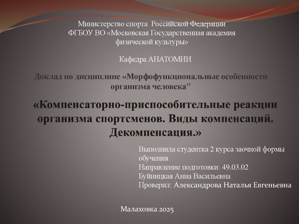 1. «Компенсаторно-приспособительные реакции организма спортсменов. Виды компенсаций. Декомпенсация.»