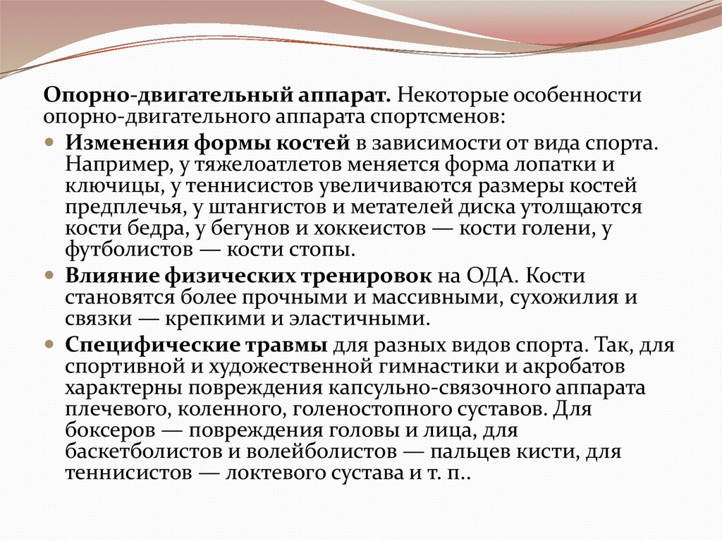 Опорно-двигательный аппарат. Некоторые особенностиопорно-двигательного аппарата спортсменов: