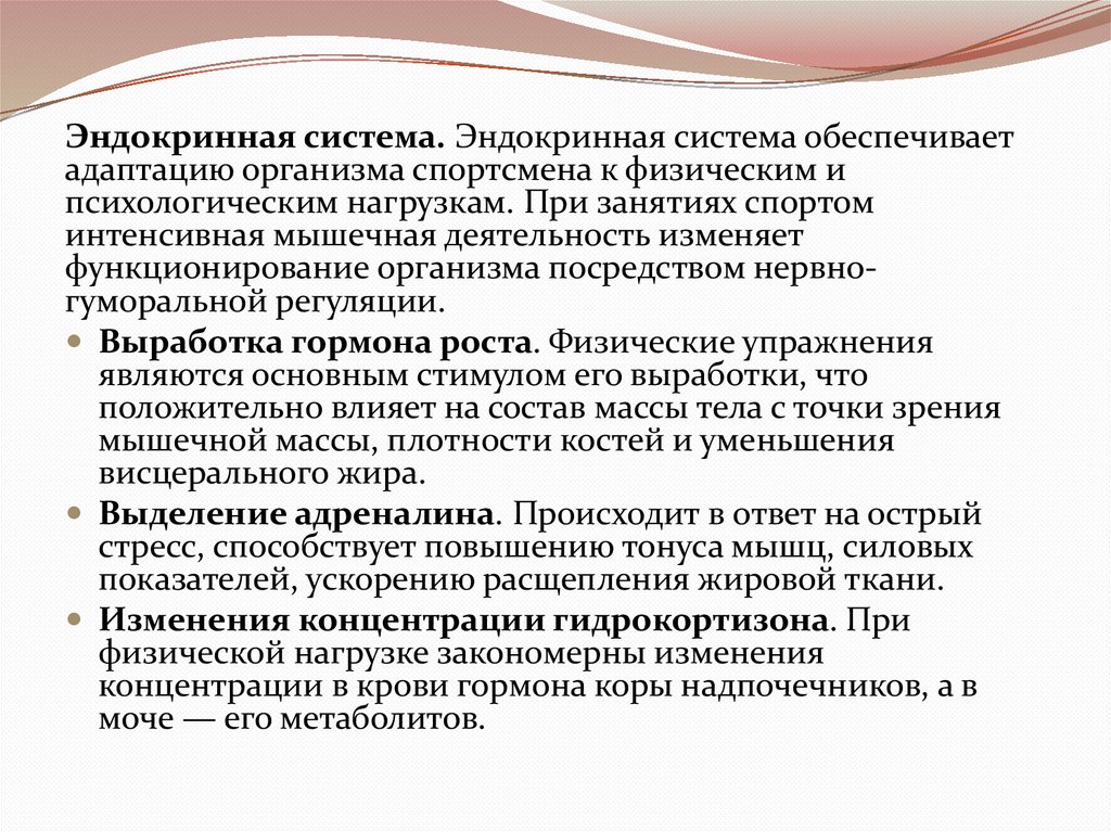 Эндокринная система. Эндокринная система обеспечиваетадаптацию организма спортсмена к физическим и