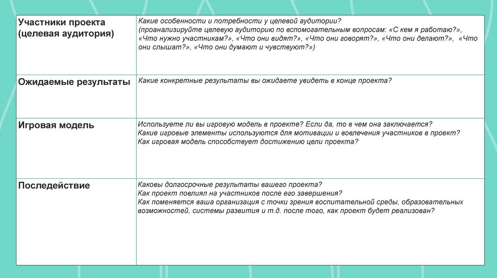 (проанализируйте целевую аудиторию по вспомогательным вопросам: «С кем я работаю?»,