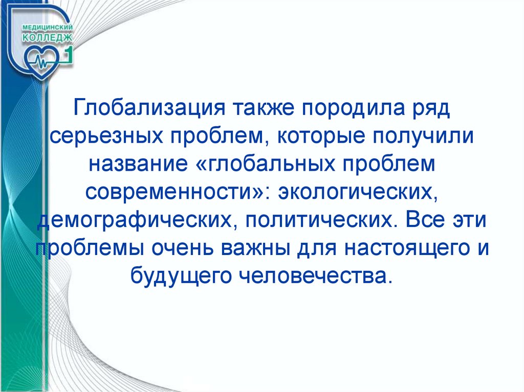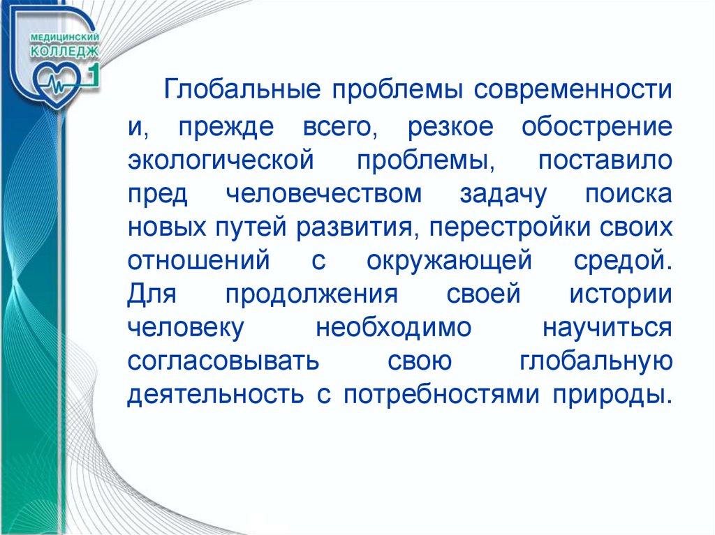 Глобальные проблемы современностии, прежде всего, резкое обострение