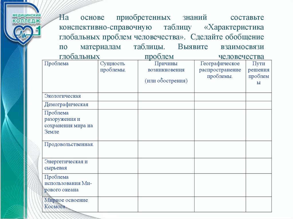 глобальных проблем человечества». Сделайте обобщение