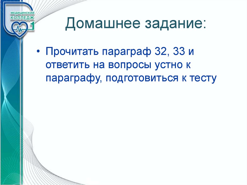 Домашнее задание:• Прочитать параграф 32, 33 и
