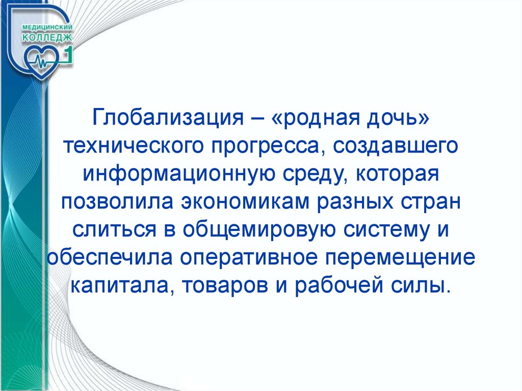Глобализация – «родная дочь»технического прогресса, создавшего