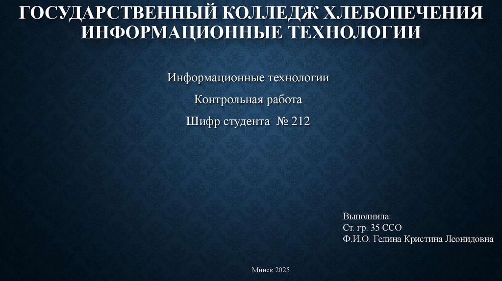 ГОСУДАРСТВЕННЫЙ КОЛЛЕДЖ ХЛЕБОПЕЧЕНИЯИНФОРМАЦИОННЫЕ ТЕХНОЛОГИИ