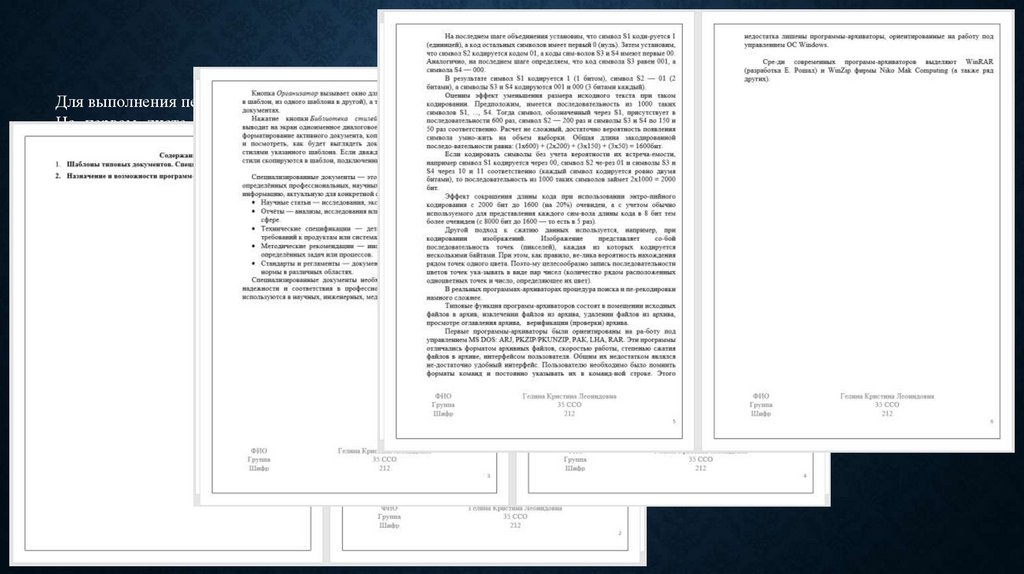 Вокруг текста была оформлена рамка а в нижний контитул информация о студенте.