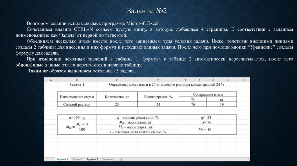 Задание №2Во втором задании использовалась программа Microsoft Excel.