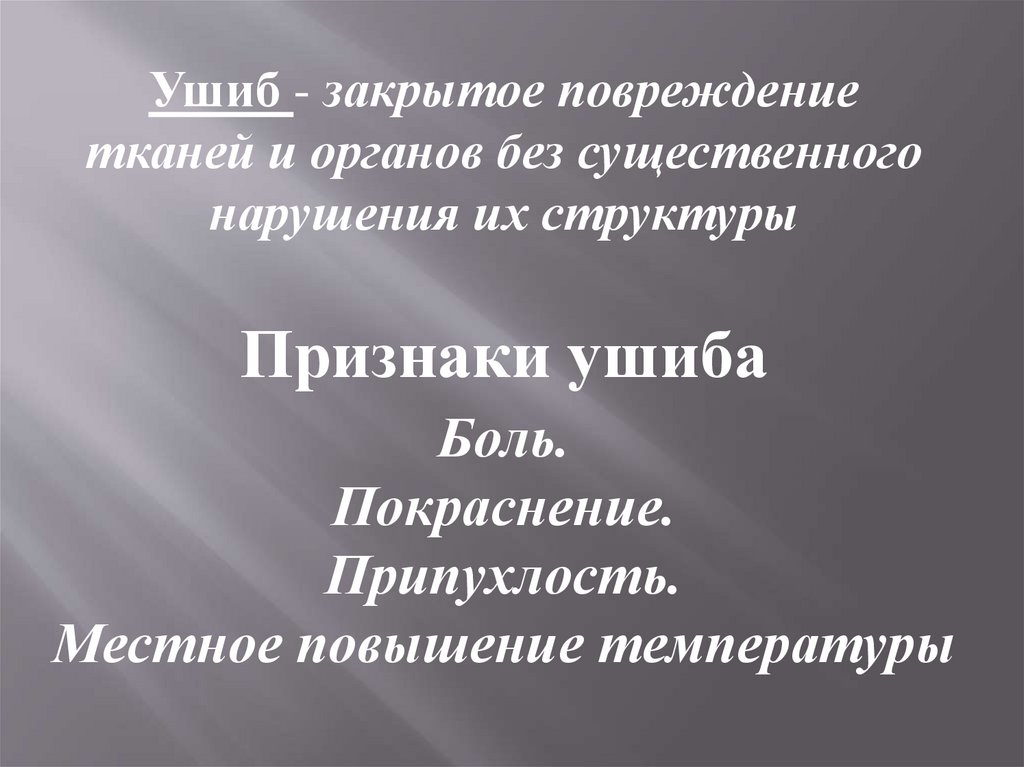 Ушиб - закрытое повреждениетканей и органов без существенного