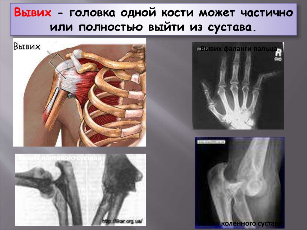 Вывих - головка одной кости может частичноили полностью выйти из сустава.