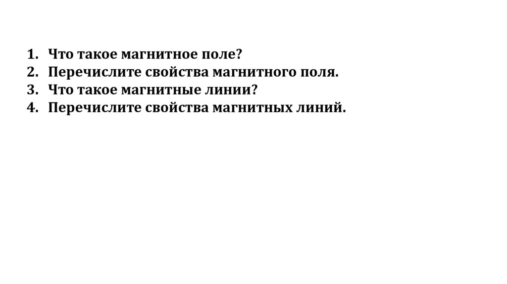 1. Что такое магнитное поле?2. Перечислите свойства магнитного поля.
