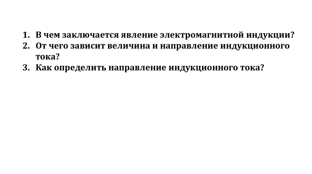1. В чем заключается явление электромагнитной индукции?2. От чего зависит величина и направление индукционного