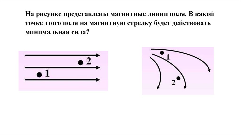 На рисунке представлены магнитные линии поля. В какойточке этого поля на магнитную стрелку будет действовать