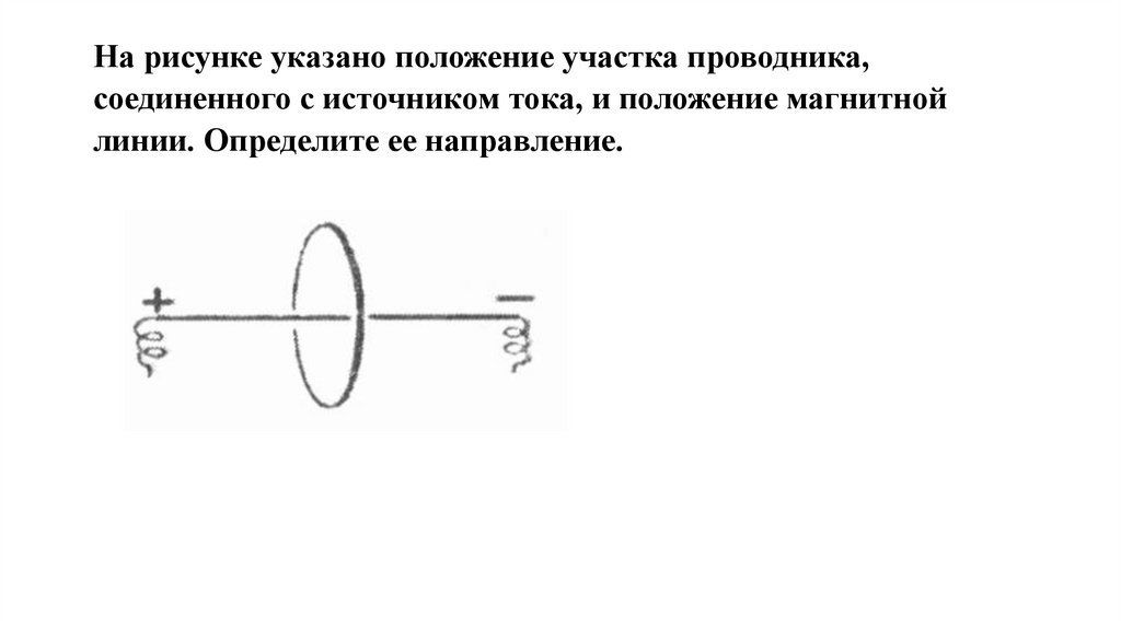 На рисунке указано положение участка проводника,соединенного с источником тока, и положение магнитной