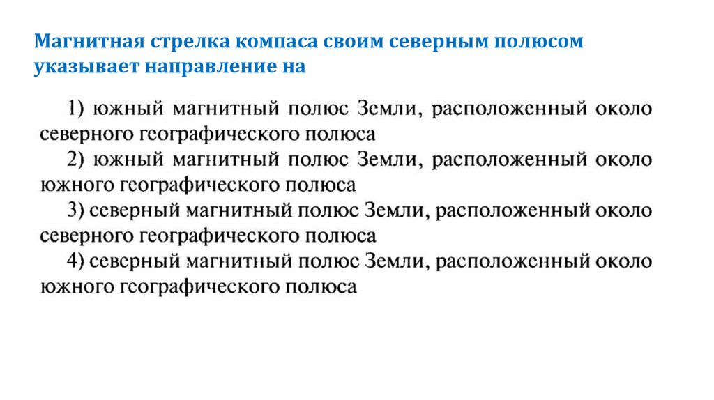 Магнитная стрелка компаса своим северным полюсомуказывает направление на