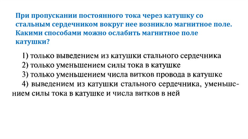 При пропускании постоянного тока через катушку состальным сердечником вокруг нее возникло магнитное поле.