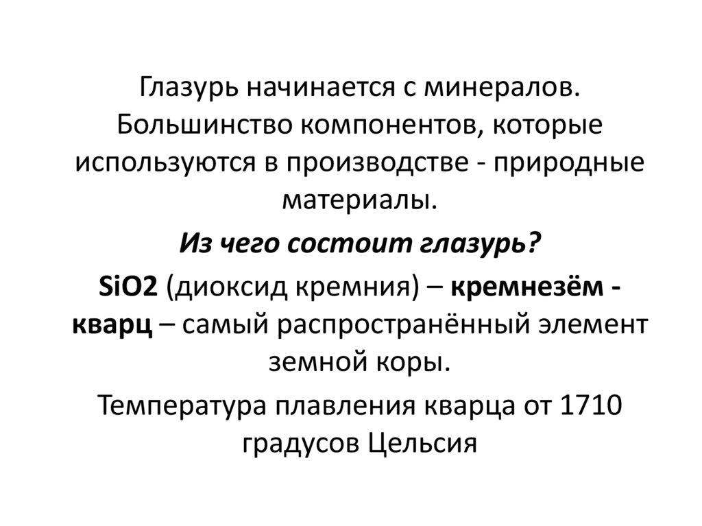 Глазурь начинается с минералов.Большинство компонентов, которые