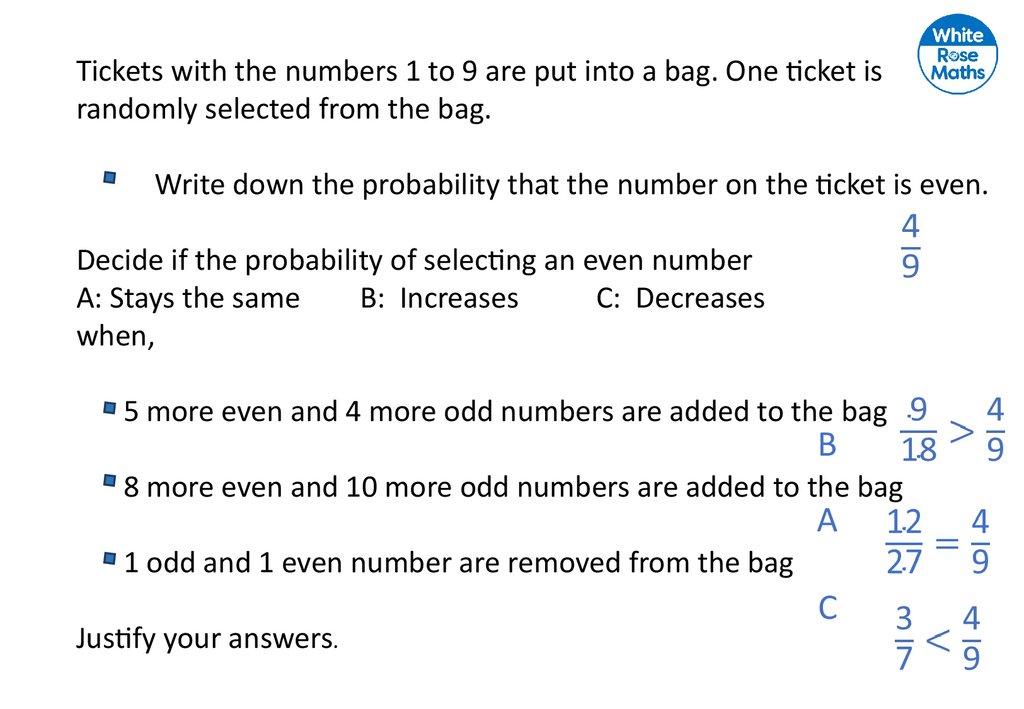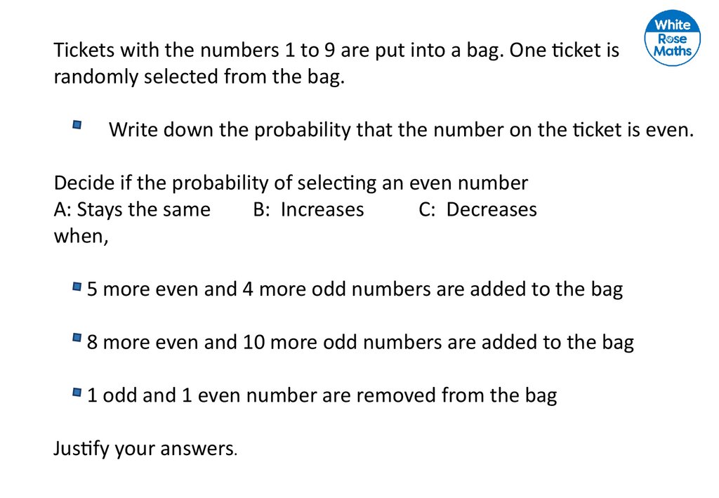 Tickets with the numbers 1 to 9 are put into a bag. One ticket israndomly selected from the bag.