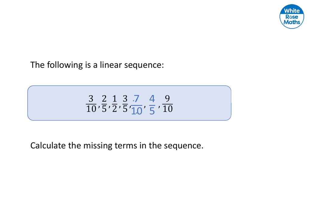 The following is a linear sequence:Calculate the missing terms in the sequence.