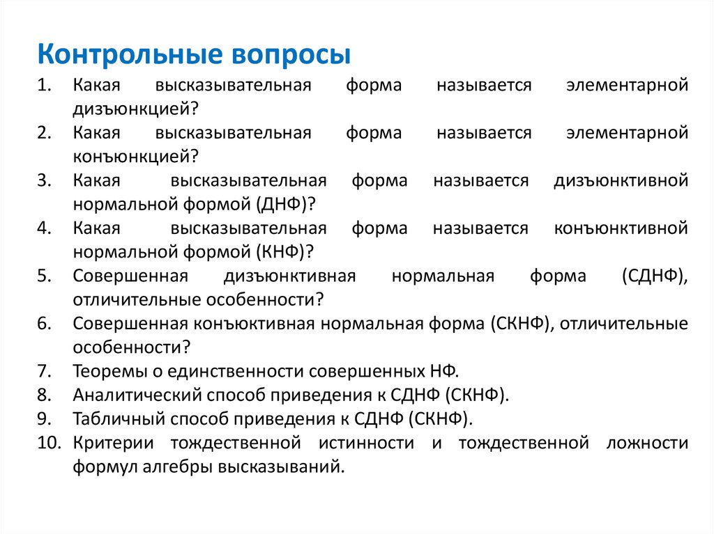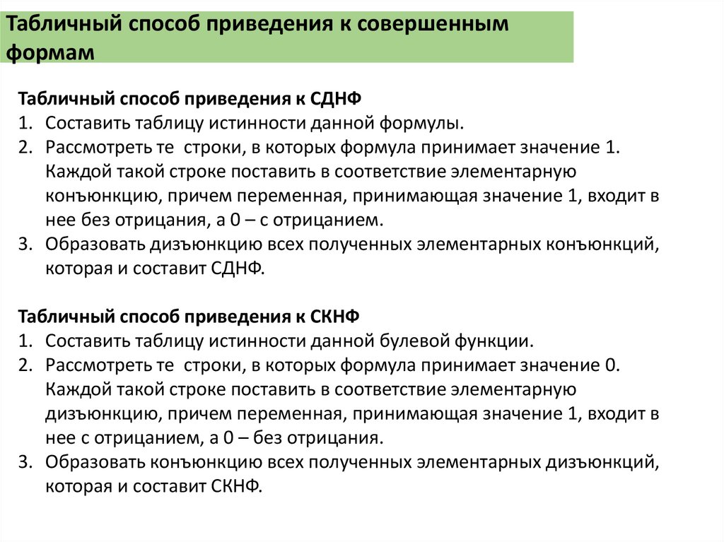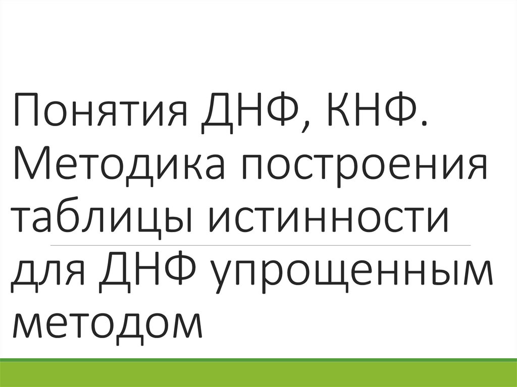 1. Понятия ДНФ, КНФ. Методика построения таблицы истинности для ДНФ упрощенным методом