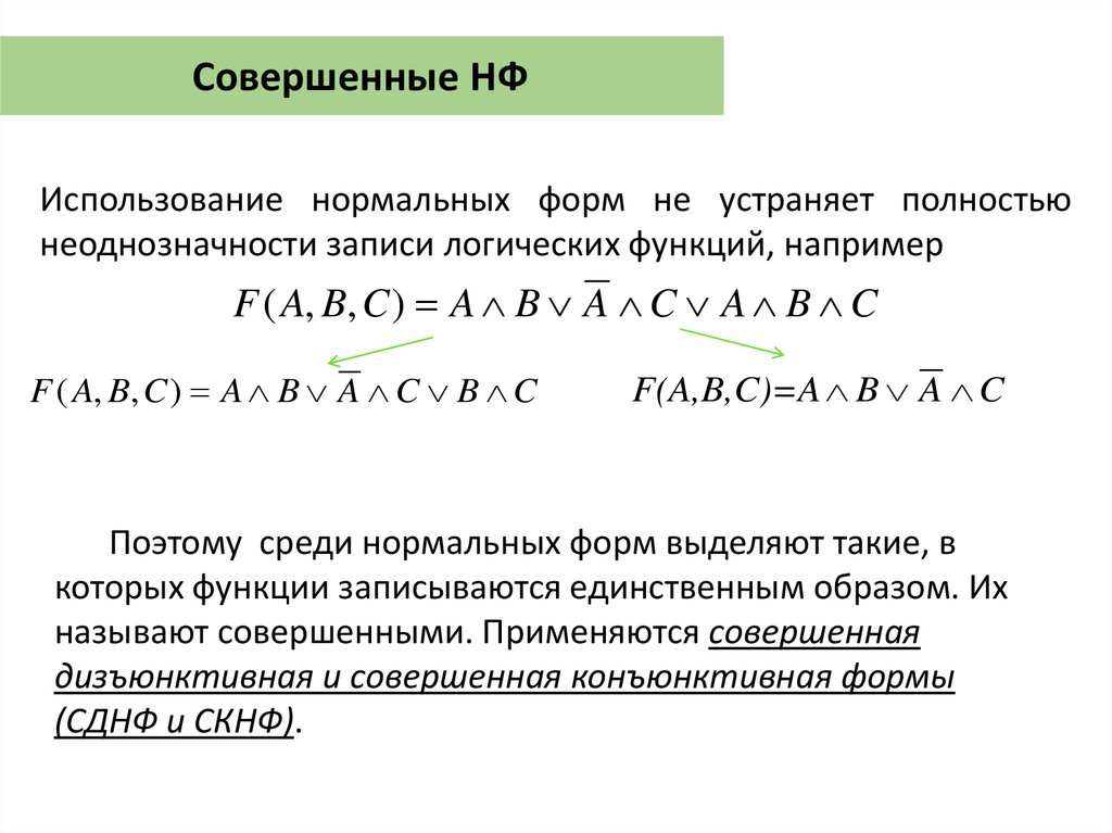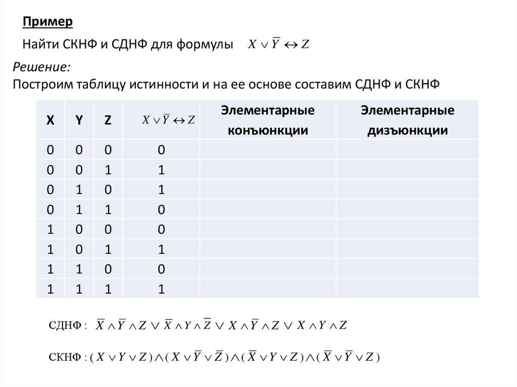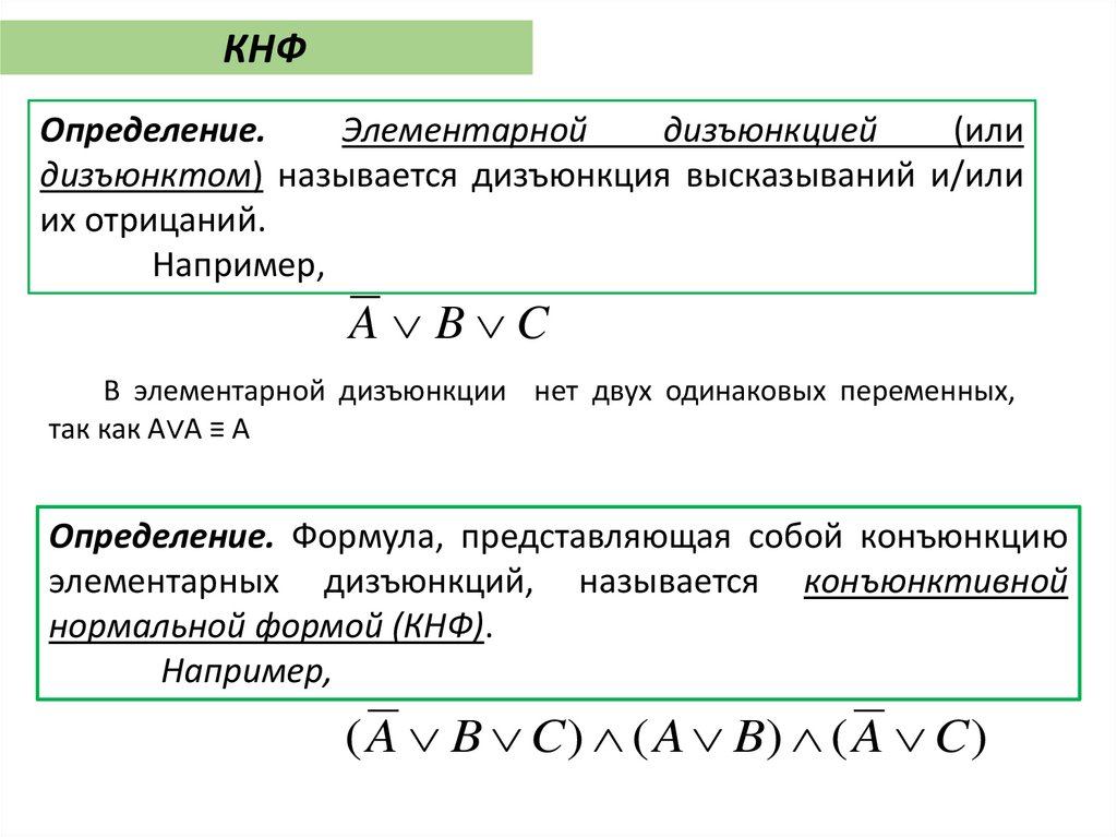 формы: дизъюнктивную (ДНФ) и конъюнктивную