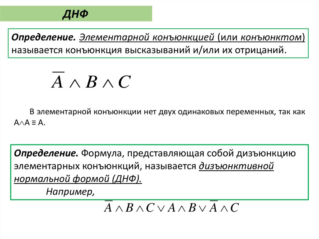 ДНФОпределение. Элементарной конъюнкцией (или конъюнктом)