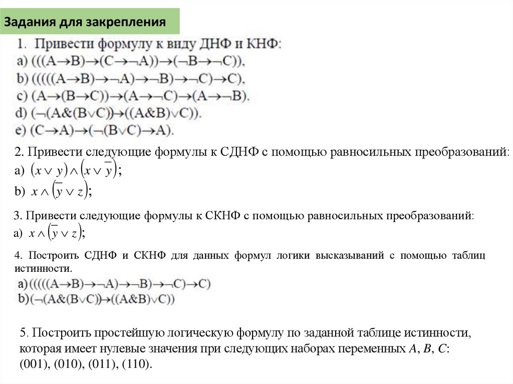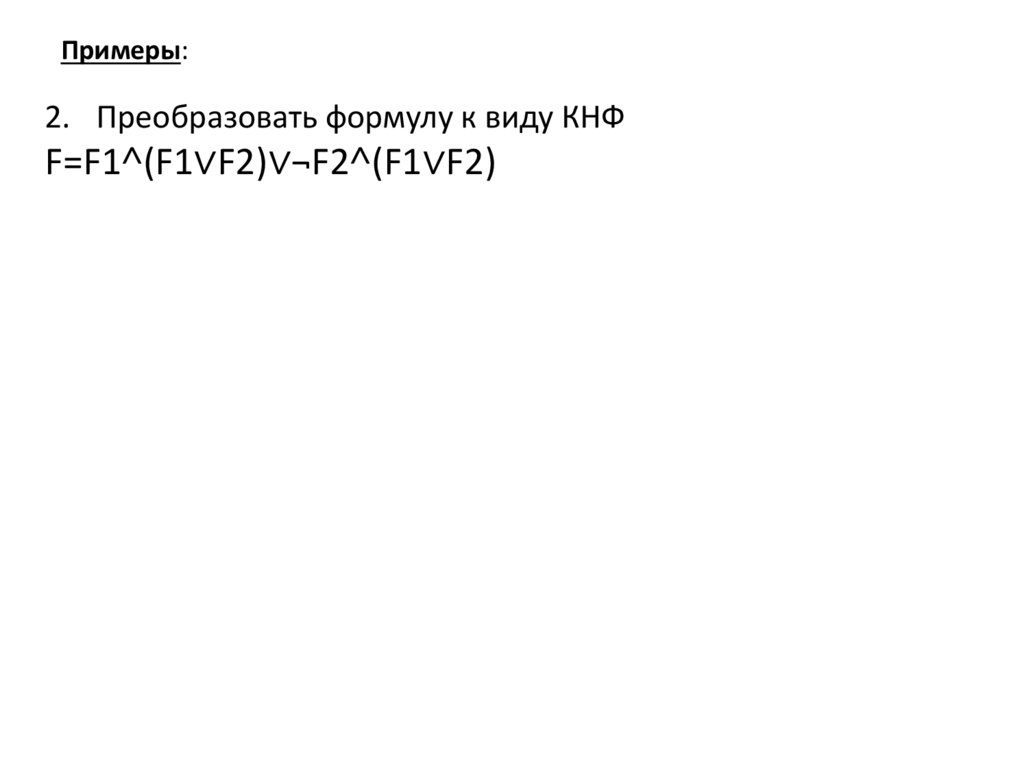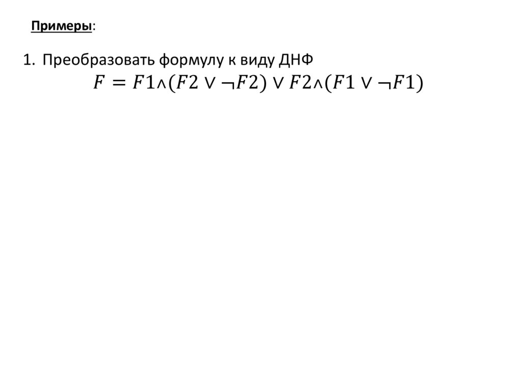 Примеры:1. Преобразовать формулу к виду ДНФ