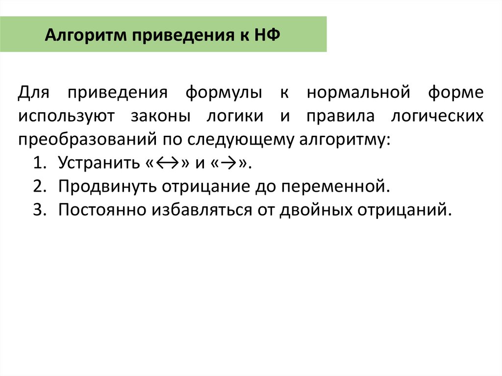 Алгоритм приведения к НФДля приведения формулы к нормальной форме