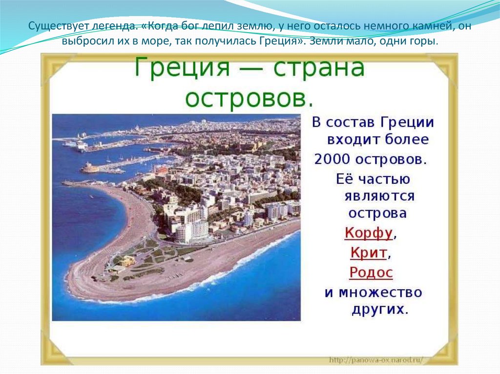 выбросил их в море, так получилась Греция». Земли мало, одни горы.