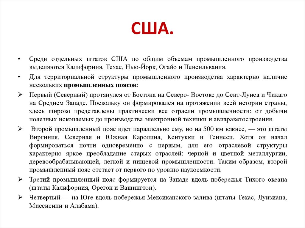 • В США выделяются четыре экономических района: СевероВосток, Средний Запад, Юг и Запад.• В состав Северо-Востока традиционно входят штаты северовосточного «угла» территории сопредельных штатов.