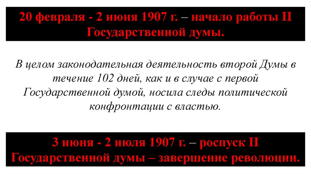 20 февраля - 2 июня 1907 г. – начало работы IIГосударственной думы.