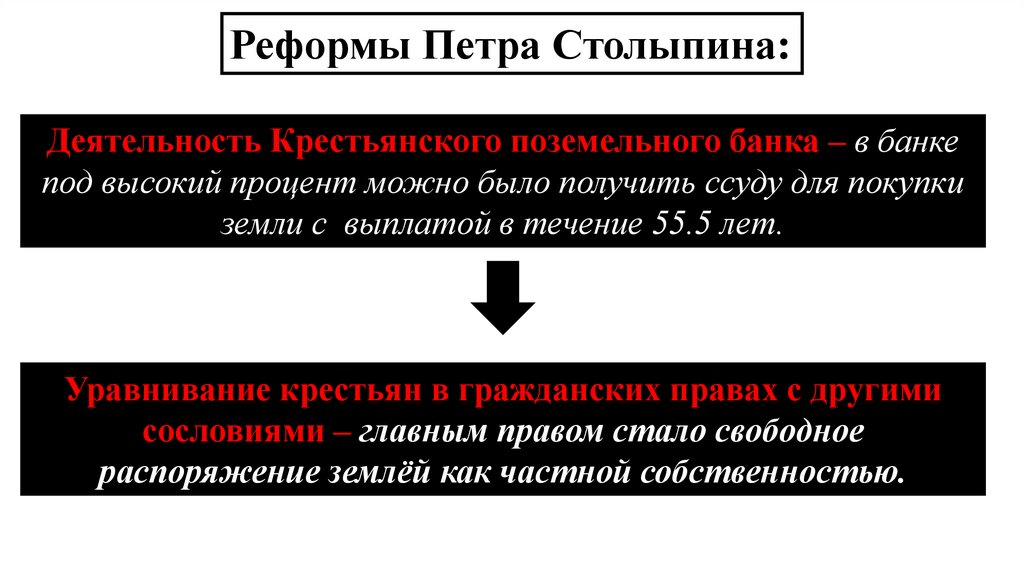 Реформы Петра Столыпина:Деятельность Крестьянского поземельного банка – в банке