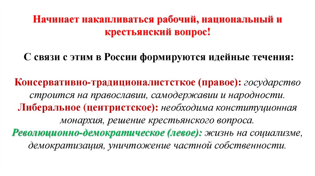Начинает накапливаться рабочий, национальный икрестьянский вопрос!