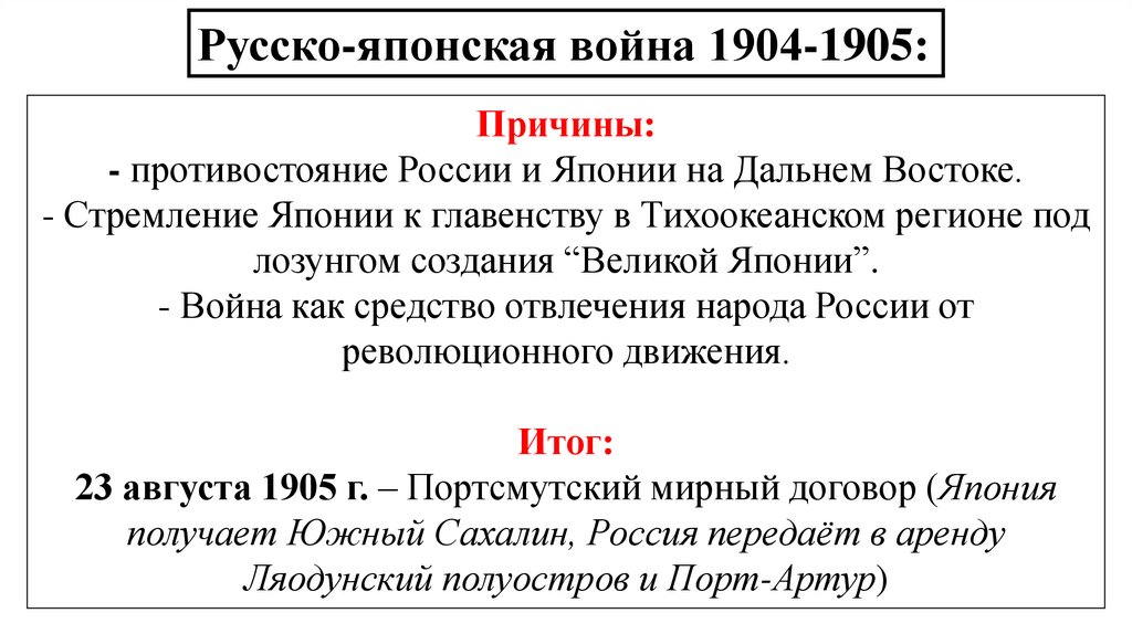 23 августа 1905 г. – Портсмутский мирный договор (Япония