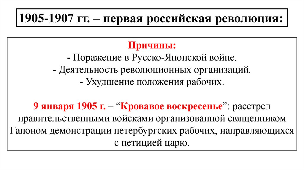 9 января 1905 г. – “Кровавое воскресенье”.Начало революции: