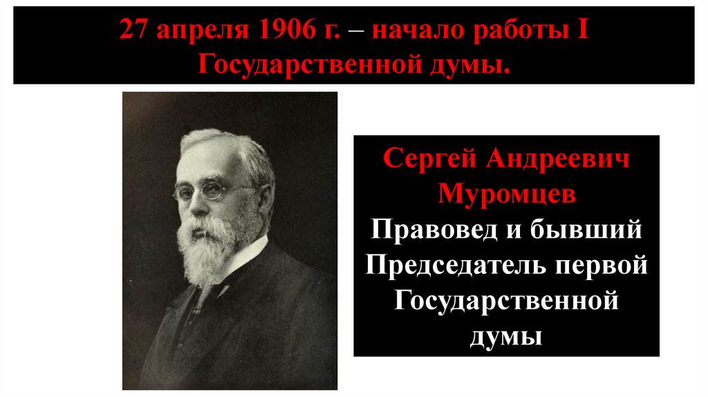 27 апреля 1906 г. – начало работы IГосударственной думы.