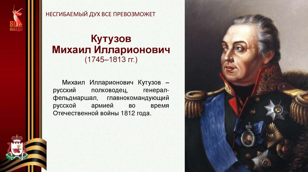 НЕСГИБАЕМЫЙ ДУХ ВСЕ ПРЕВОЗМОЖЕТКутузов